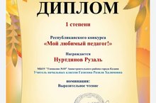 Поздравляем ученика 3Б класса Нуртдинова Рузаля и классного руководителя Газизову Разилю Халимовну с 1 местом в Республикансеом конкурсе "Мой любимый педагог!"