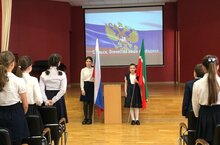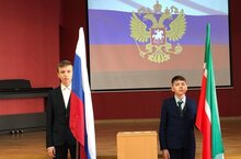 Вчера в актовом зале нашей школы прошла первая в этой четверти церемония вноса Государственных флагов Российской Федерации и Республики Татарстан !