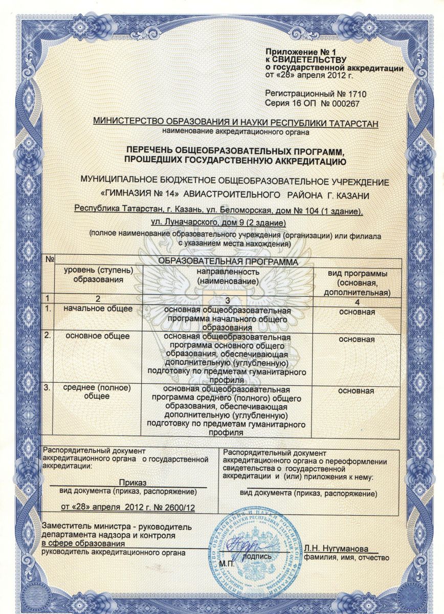 Муниципальное бюджетное общеобразовательное учреждение «Гимназия №14» Авиастроительного района г. Казани