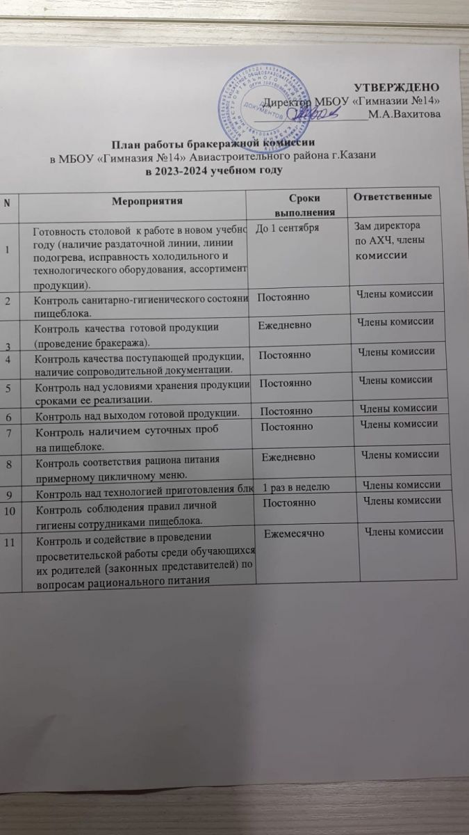 ПОЛОЖЕНИЕ о бракеражной комиссии