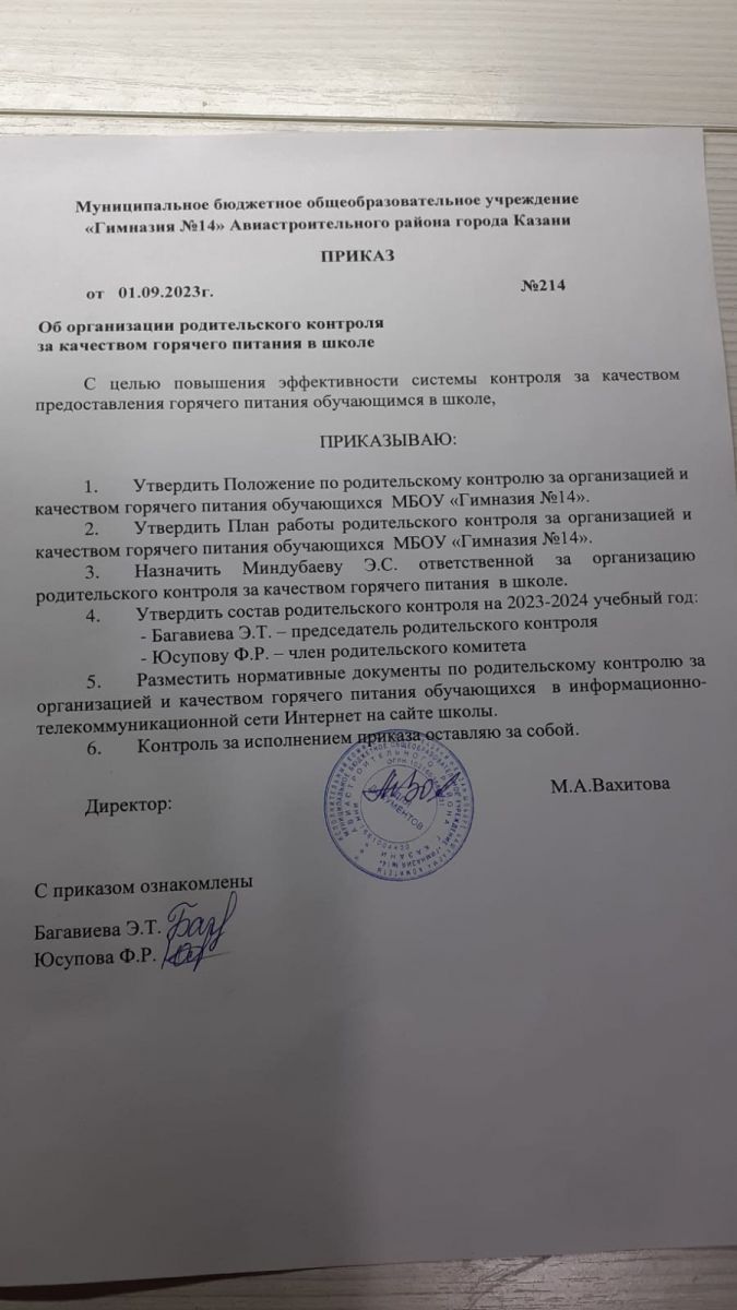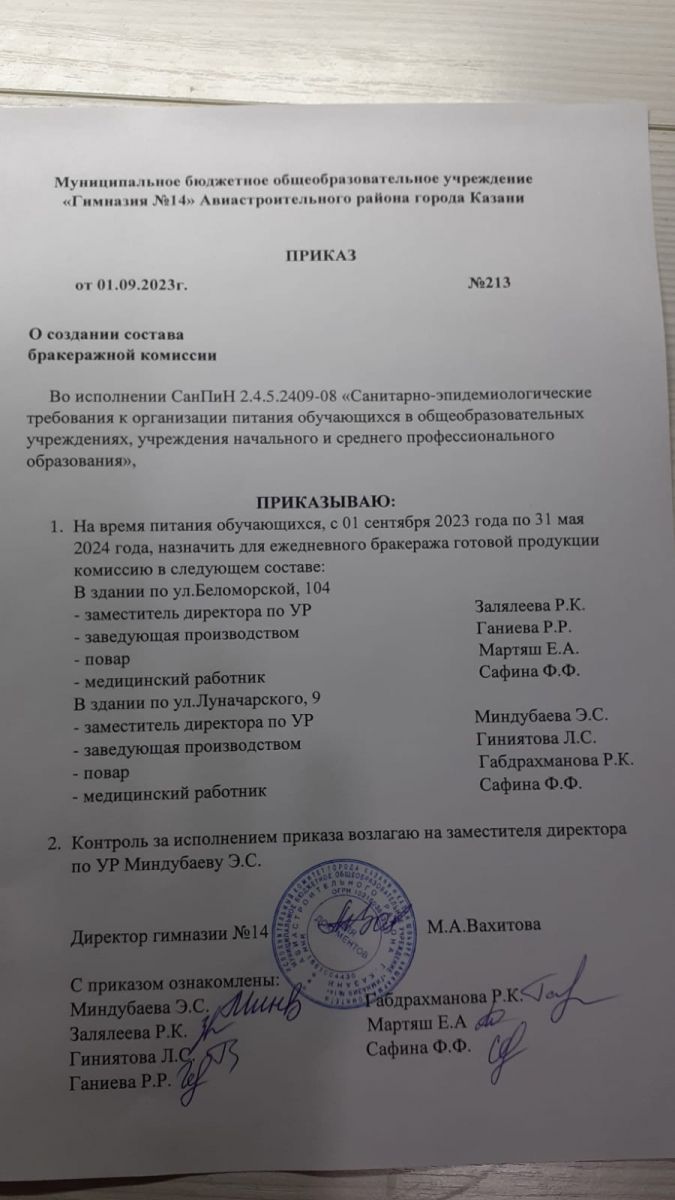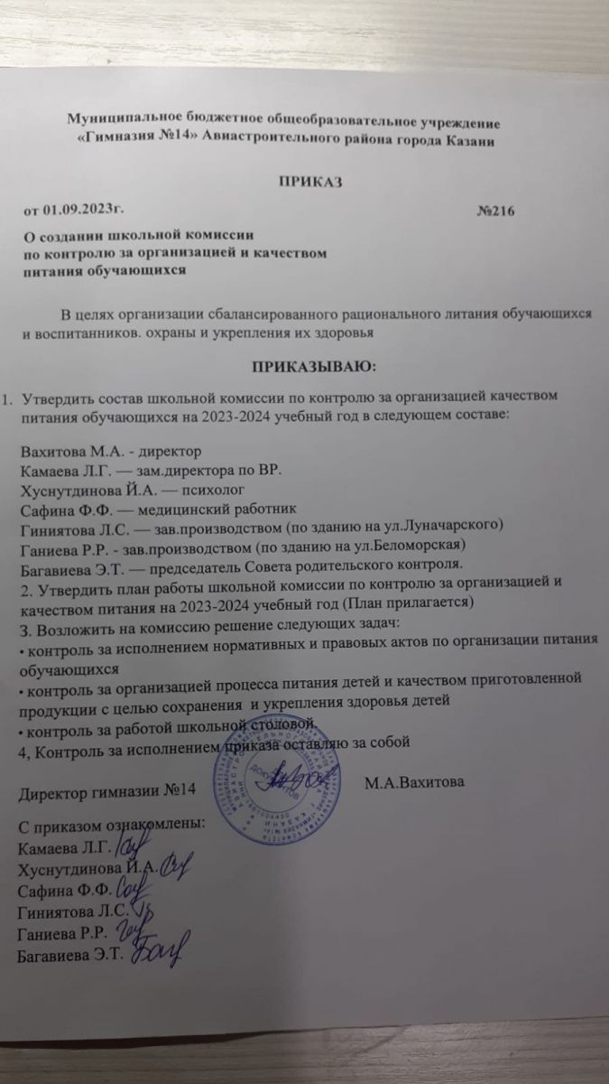 Приказ "О создании школьной комиссии по контролю за организацией и качеством питания обучающихся"
