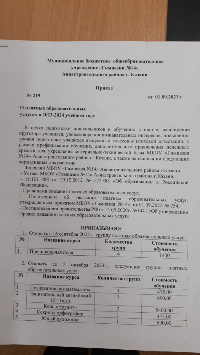 Приказ об открытии групп платных образовательных услуг 2023-2024