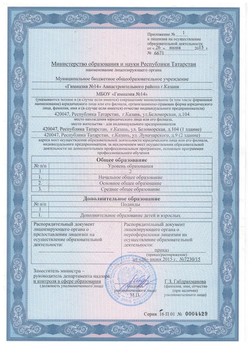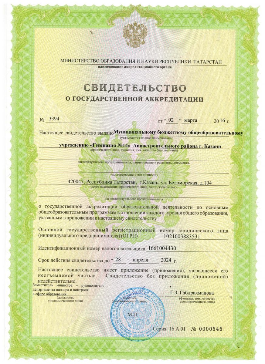 Муниципальное бюджетное общеобразовательное учреждение «Гимназия №14» Авиастроительного района г. Казани