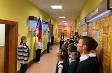 Право открыть новую учебную неделю предоставилось учащимся 9А и 1В класса. Выносили и устанавливали флаг Российской Федерации и флаг Республики Татарстан активисты 9А класса. Также ребята исполнили гимн Российской Федерации и гимн Республики Татарстан.