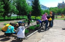 Традиционная посадка цветов в клумбы выпускниками гимназии