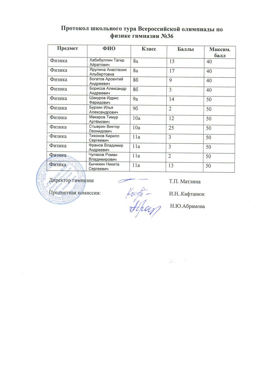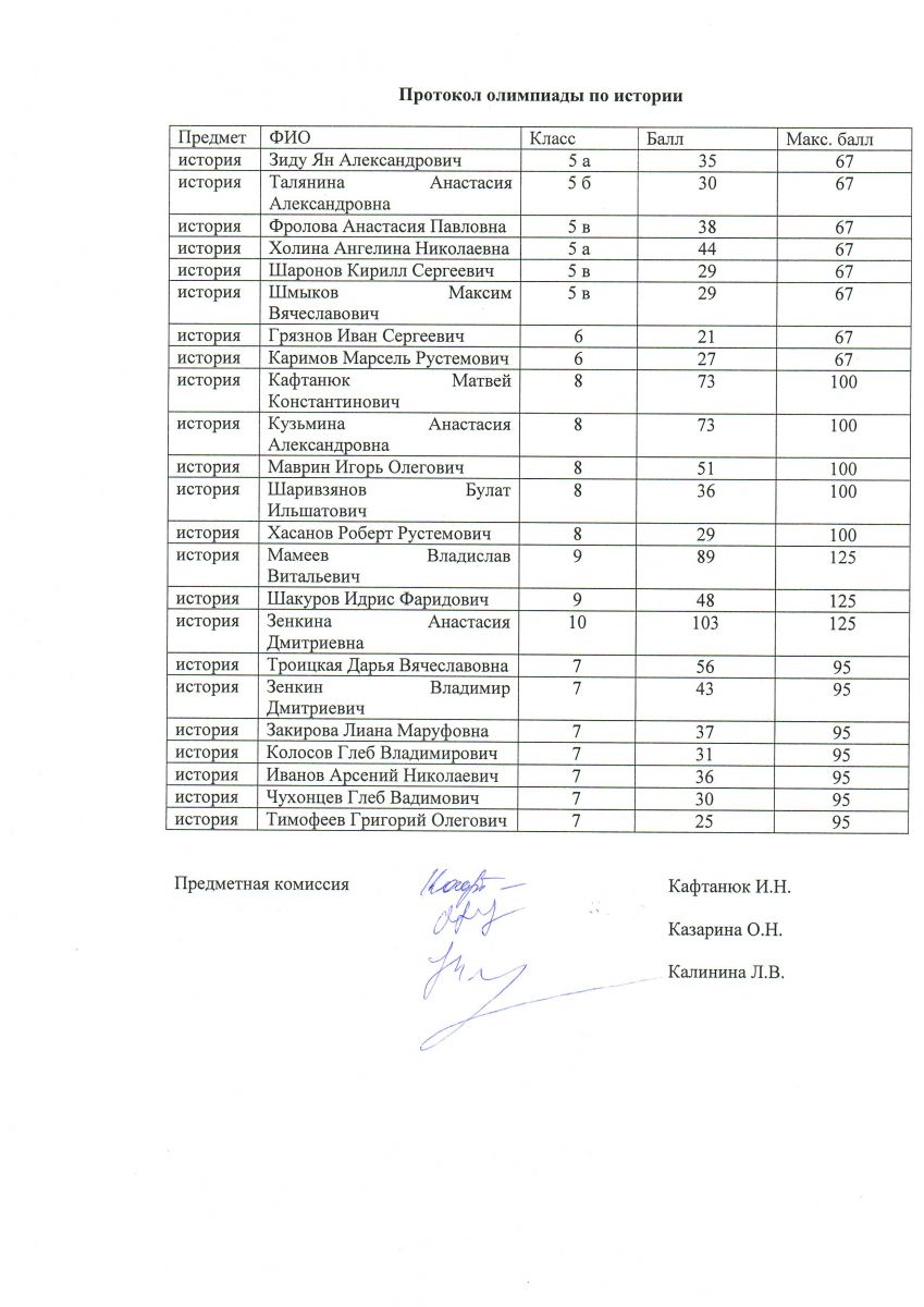 Результаты школьных олимпиад 24.10.2016