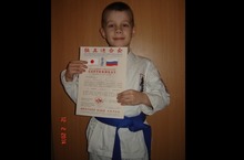 Тюлютин Виктор успешно изучил технику Кёкусин каратэ. Ему присвоен синий пояс!