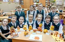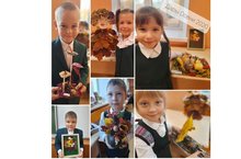 Учащиеся 1'Б"класса приняли участие в школьном конкурсе поделок из природного материала "Магия оранжевого цвета". Ребята проявили творчество и фантазию, применяя в качестве материала овощи, фрукты. А Аликов Федор сделал чудесных оленей из соломы.Молодцы ребята!