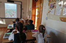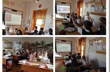 Гости из Национальной библиотеки проводят презентацию сказки "Щелкунчик" в 3Б классе.