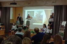 Учащиеся 8б класса с классным руководителем Мариной Анатольевной Гараниной и заведующей библиотекой Ниной Михайловной Пантелеймоновой подготовили устный журнал, посвященный 125-летию со дня рождения Сергея Есенина.