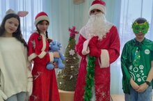 Необычное поздравление получили обучающиеся 7 б класса. В роли Деда Мороза и Снегурочки к ним пришли ученик 10 а класса Х. Дамир и его мама Альбина Айратовна.