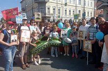 9 мая Казань присоединилась к всероссийской акции «Бессмертный полк». В этой патриотической акции и приняла наша школа совместно с родителями, учителями, учениками и администрацией школы. С портретами своих родственников, принимавших участие в Великой Отечественной войне прошли по центральным улицам г. Казани