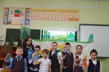 8 февраля перед каникулами для первоклассников выступила школьная театральная студия «Карусель» (руководитель Даминова О.А.) с народной сказкой «Колобок». Артисты волновались, так как для некоторых это было первое выступление. Но зрителям очень понравилось.