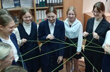 Советник директора по воспитанию Губайдуллина Л. М. совместно обучающимися 4а и 4в класса присоединились к плетению масксети в пункте плетения маскировочных сетей и приема гуманитарной помощи на Максимова 1.