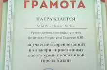 Поздравляем команду МБОУ «Школы №54» занявшую 1 место в соревнованиях по пожарно - прикладном спорту среди школьников города Казани. Руководитель команды Сидоров А.Ю.
