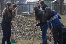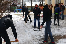 Ребята активно очищали прилежащую территорию от мусора и грязи.