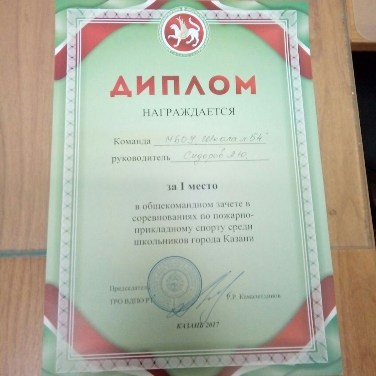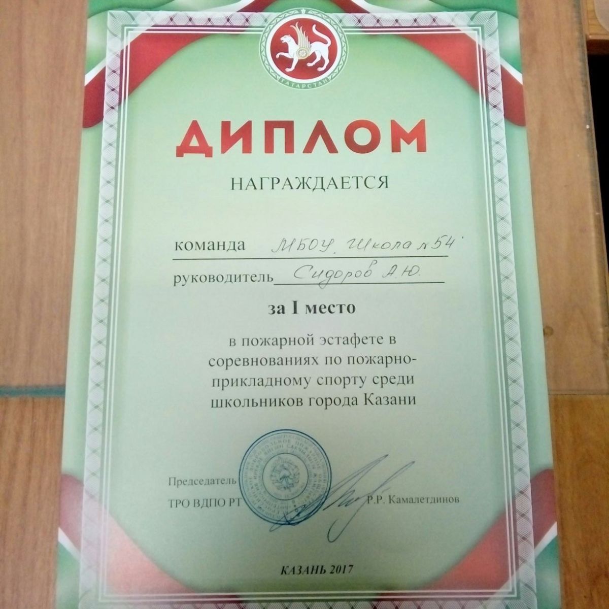 Опубликовано: 02.11.2017Поздравляем команду МБОУ «Школы №54» занявшую 1 место в соревнованиях по пожарно - прикладном спорту среди школьников города Казани. Руководитель команды Сидоров А.Ю.