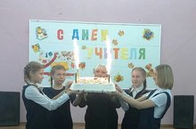 Сегодня для всех педагогов нашей школы активисты ДОО "Союз мальчишек и девчонок " не только пели, танцевали, но и подарили большой торт . 05.10.2017