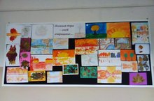 Учитель ИЗО Лариса Ивановна совместно с учащимися оформила выставку детских рисунков и поделок "Осенняя пора -очей очарованье..." 03.10.2017