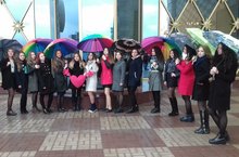 Сегодня ученицы 11 класса устроили флешмоб цветные зонты под лозунгом "Ура! Каникулы!" 31.10.2016