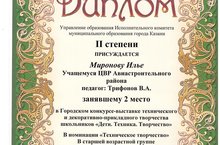 Поздравляем Миронова Илью( 7 «А» класс), занявшего II место в Городском конкурсе-выставке технического и декоративно-прикладного творчества школьников «Дети. Техника. Творчество» в номинации «Техническое творчество» (старшая возрастная группа).Руководитель проекта Трифонов Владимир Анатольевич.Молодцы!!! 29.04.2016