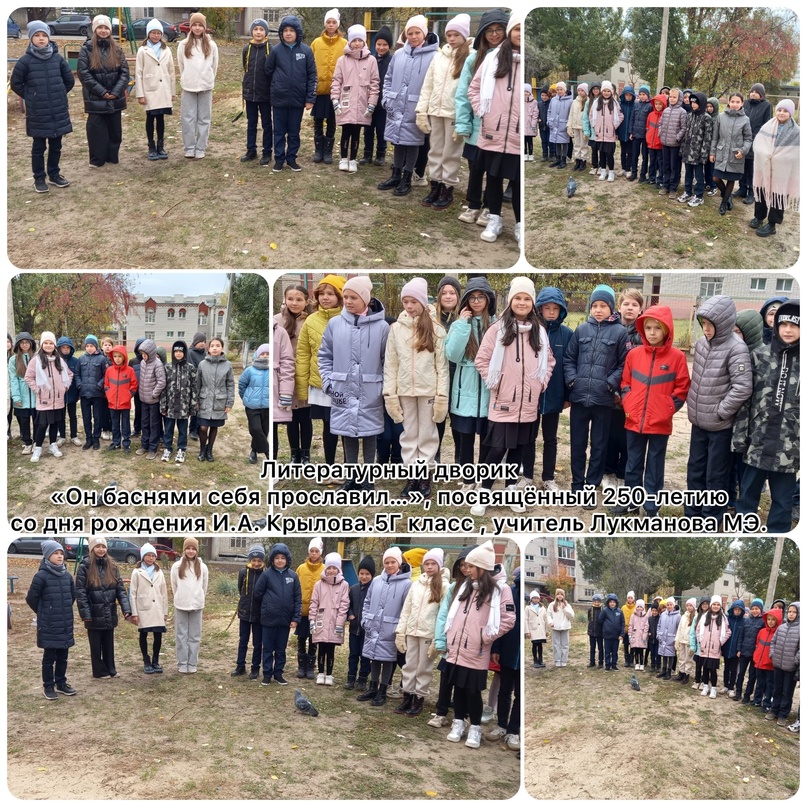 - «Он баснями себя прославил…», посвящённый 250-летию со дня рождения И.А. Крылова. Мероприятие было подготовлено учителем русского языка и литературы М.Э. Лукмановой и обучающимися 5 Г класса -