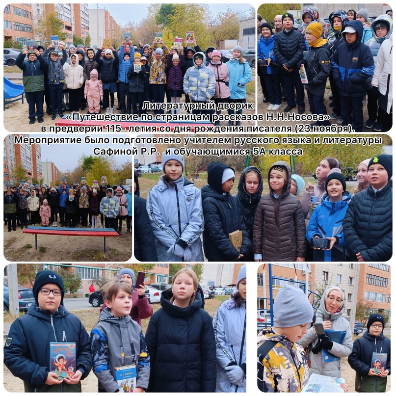 - «Путешествие по страницам рассказов Н.Н.Носова» в предверии 115- летия со дня рождения писателя (23 ноября). Мероприятие было подготовлено учителем русского языка и литературы Сафиной Р.Р. и обучающимися 5А класса;