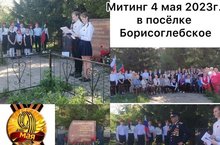 4 мая 2023г. в посёлке Борисоглебское учащимися школы 77 Авиастроительного района г. Казани под руководством Вавиловой Клавдии Юрьевны, заместителя директора по воспитательной работы и Конышевой Натальи Леонидовны, руководителя театрального кружка «77 параллель» был организован для жителей посёлка и тружеников тыла Митинг Памяти, посвящённый празднованию 78-й годовщины Великой Победы