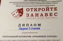 - Поздравляем театральный коллектив "Оранжевое солнце" под руководством Конышевой Натальи Леонидовны, получивших Диплом 2 степени на районном конкурсе-фестивале "Откройте занавес". Театральный коллектив выступал в номинации "Театральное искусство "с литературной композицией на стихи А.Барто "Все о девочках"(возрастная категория 9-11 лет). 02.03.2019