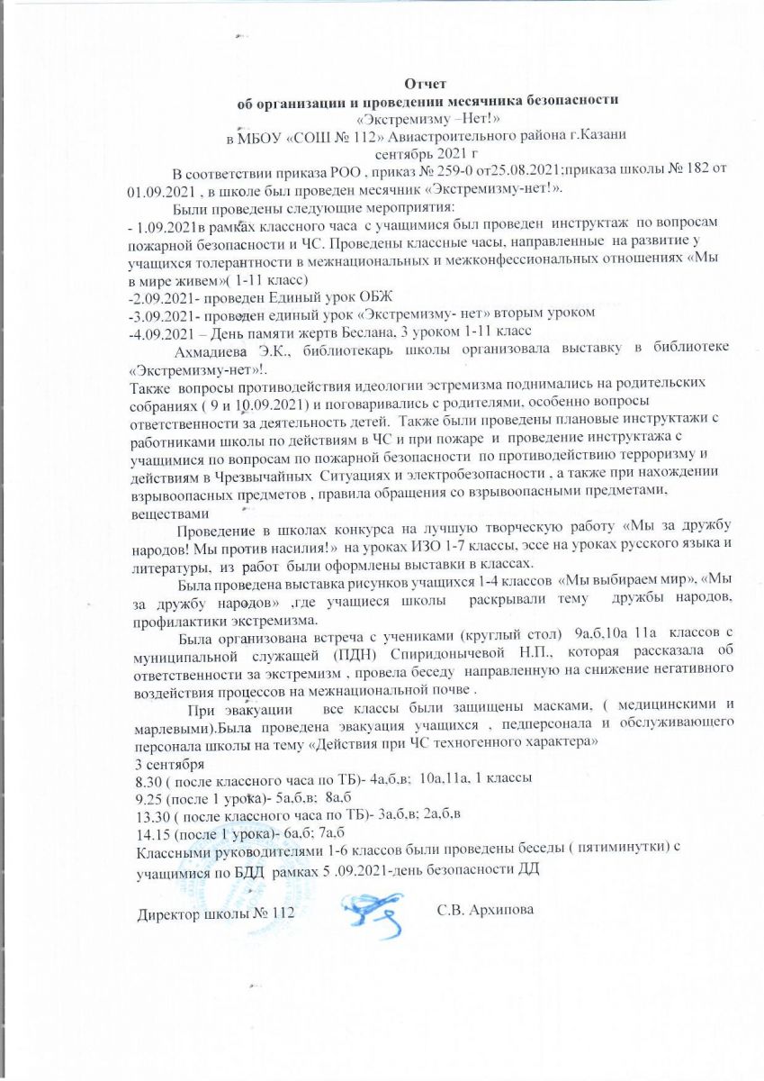 Отчет об организации и проведении месячника безопасности «Экстремизму –Нет!"-2020»