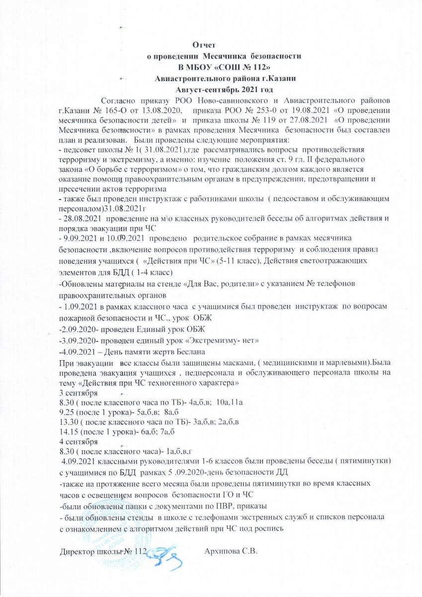 Приказ "Об организации и проведении месячника безопасности" №164-о от 28.08.2021
