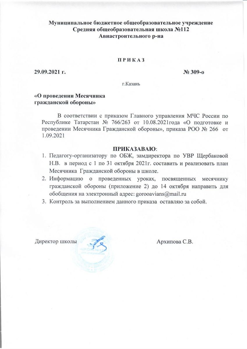 Приказ "О проведении месячника ГО" № 260-о от 30.09.20г.