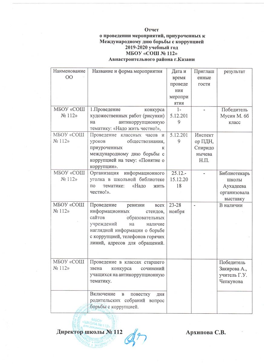 Отчет по реализации плана месячника борьбы с коррупцией