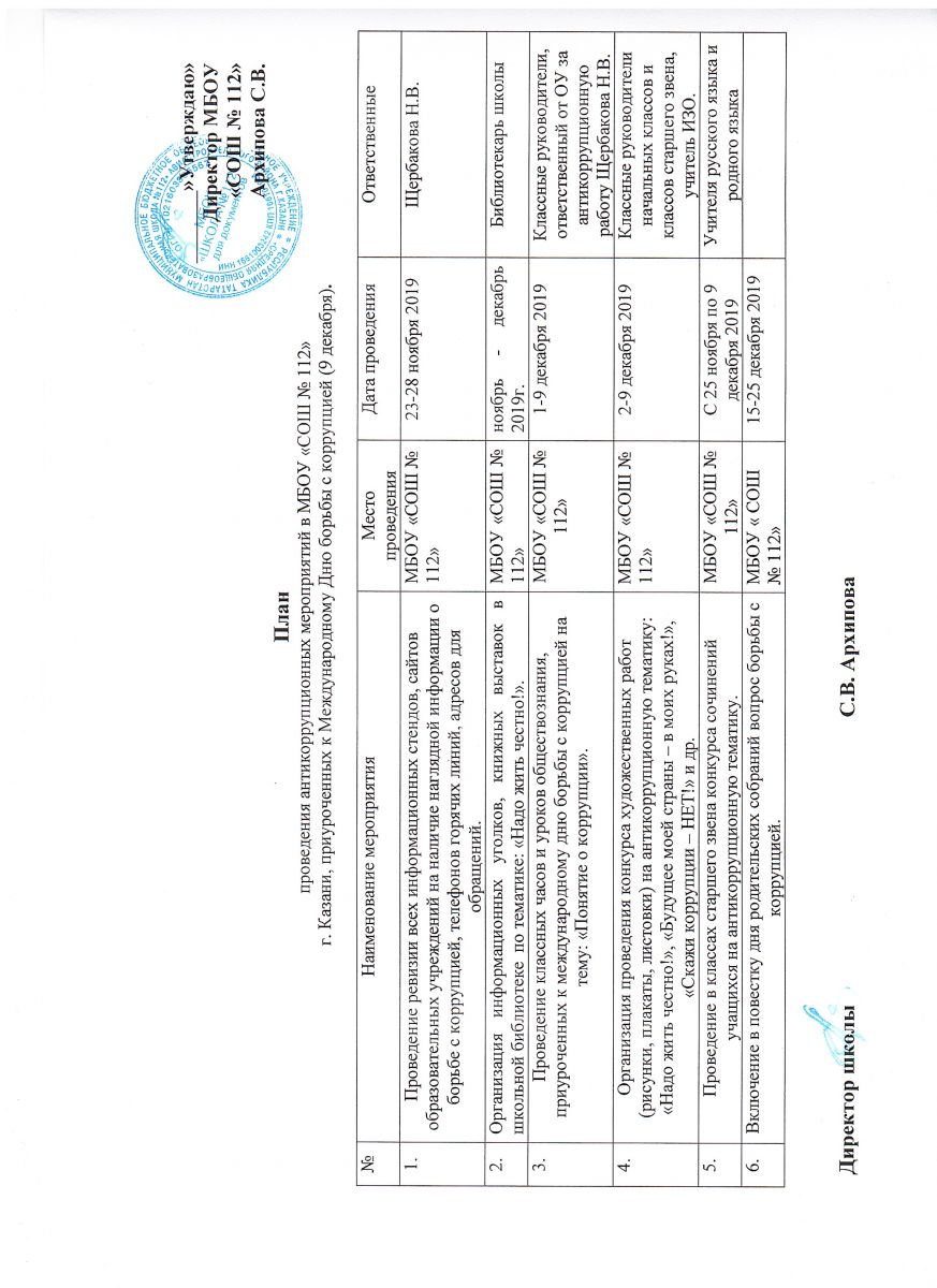 План проведения антикоррупционных мероприятий (9 декабря 2019г.)