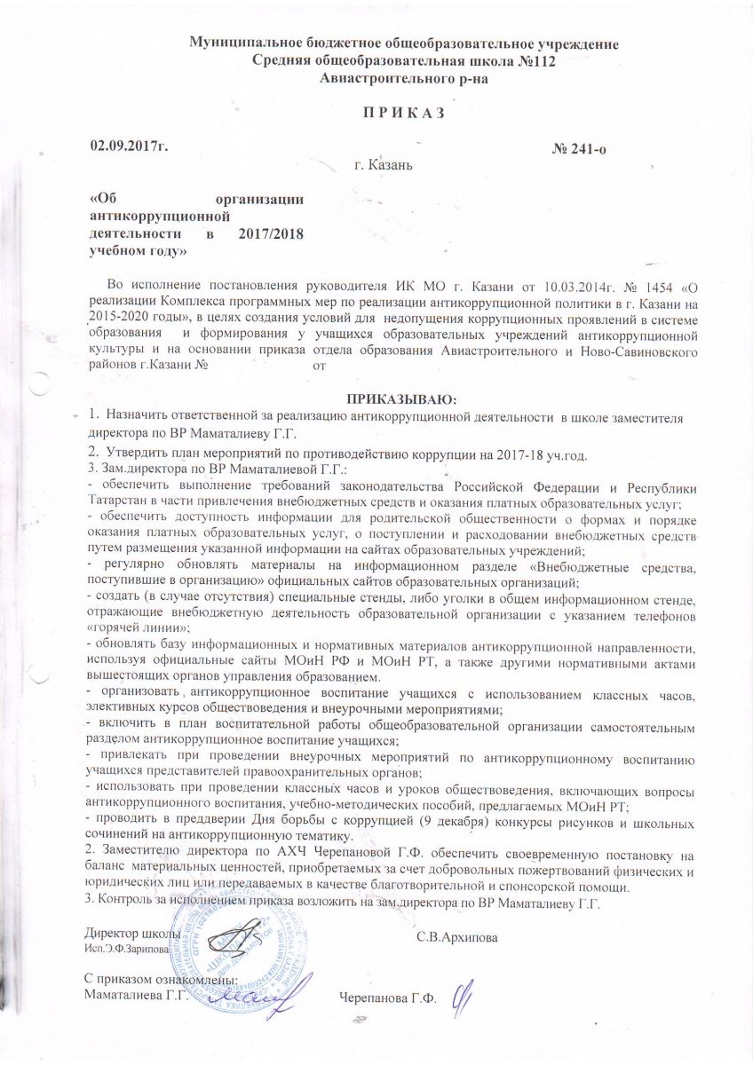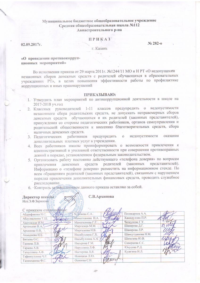 Приказ об антикоррупционной деятельности в 2017/2018 учебном году