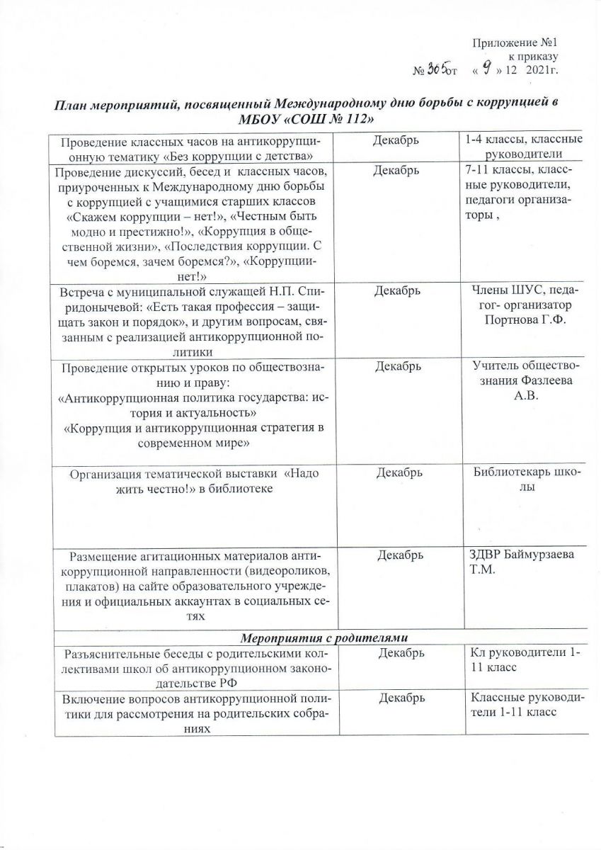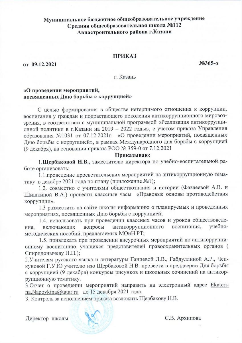 Приказ месячника по профилактике антикоррупционных проявлени №365 от 9.12.2021