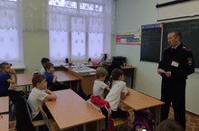 Сегодня капитан полиции ГИБДД Залялютдинов И.Ф. провел лекцию по правилам дорожного движения для учащихся 1-х классов