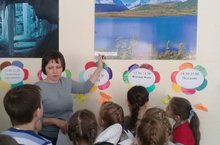 Сегодня, в пришкольном лагере "Звездный" прошла экскурсия по фотовыставке Моя Россия. Педагоги рассказали детям об удивительных красотах нашей Родины.