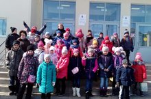 Сегодня учащиеся 1а и 2а класса посетили КРК "Пирамиду" , где посмотрели спектакль Царевна Лягушка