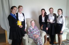 Сегодня учащиеся 7а класса Сепп А.,Сиразиева Л.,Романова Ю.,Гаврилова Е.,Вагизова С., совместно с классным руководителем Абдуллазяновой Ильсияр Вазиховной поздравили ветерана труда Хабибуллину Разяп Гиниятулловну, с днем пожилого человека. Рязап Гиниятулловна родилась 2 марта 1929 года в деревне Яна Авыл Высокогорского района и 36 лет поработала санитаркой в деревенской поликлинике.
