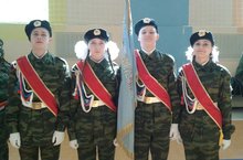 Школьная команда, в составе которой учащиеся Серегин Степан (9а), Никитина Гульнара (8а), Сухих Настя (8а), Ахметшин Марс(8а), заняла первое место в городском конкурсе знаменных групп. Молодцы, ребята!