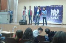 КВН 15.10.2015 15 октября 2015 года в КДЦ им. А. Гайдара состоялась финальная районная игра команд КВН Лиги А, в которой приняла и наша команда "РИО".Несмотря на дебют, ребята отлично держались на сцене. Это Соколиков Руслан (6а), Сипол Спартак (6а), Эльгайтарова Эльвина (8а), Ботирова Муслима (8а).