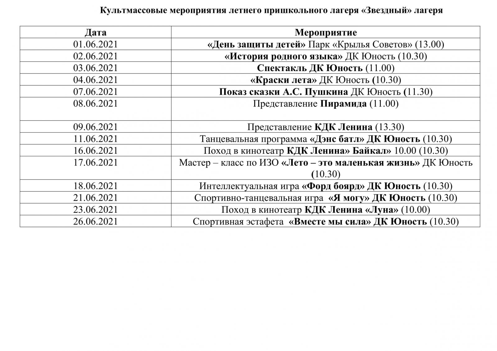 культмассовые мероприятия пришкольного лагеря "Звездный"