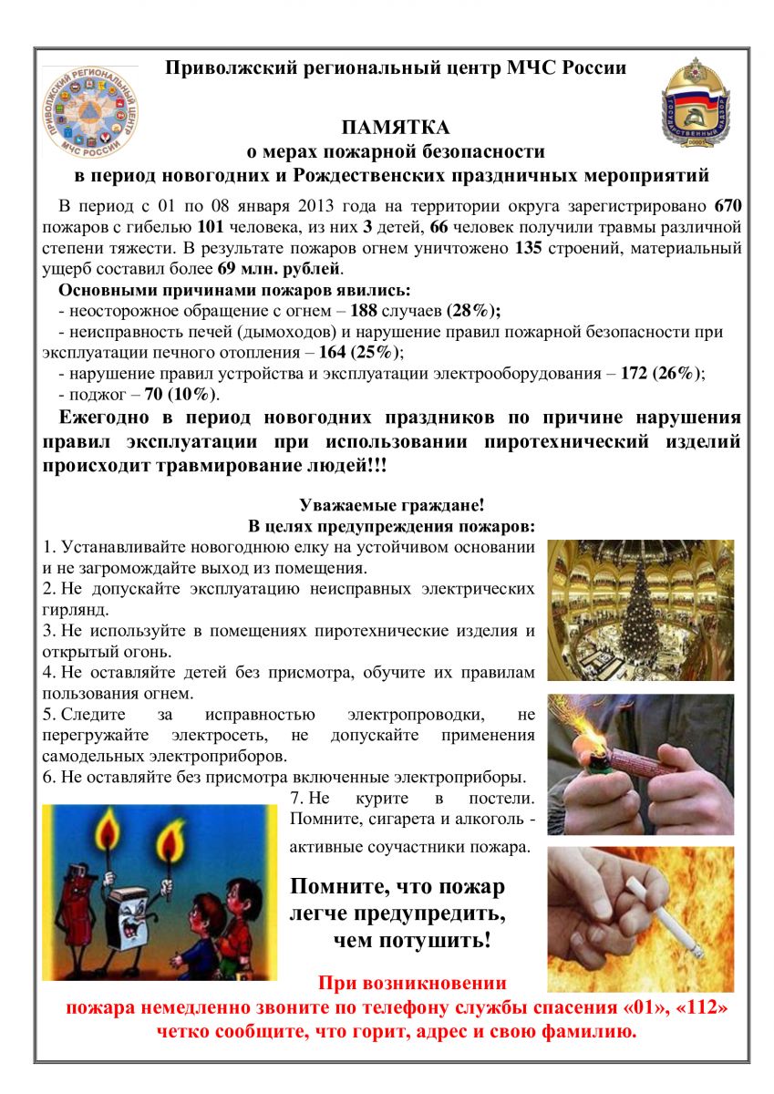 Памятка о мерах Пожарной Безопасности в период новогодних и Рождественских праздничных мероприятий 18.12.2020