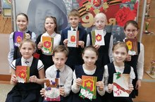 «Школьники при помощи ножниц, клея и цветной бумаги смастерили праздничные открытки: каждая из них получилась оригинальной и не похожей на другие. Дети сами придумывали дизайн открыток, украшали её соответствующими аксессуарами, подбирали гармоничные оттенки цветовой гаммы. Каждый ребёнок обдумал, как будет выглядеть надпись на его открытке, адресованная ветерану той далекой войны»