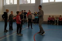 Сегодня в пришкольном лагере "Созвездие" прошли весёлые старты, ребята провели разминку и поиграли в мяч