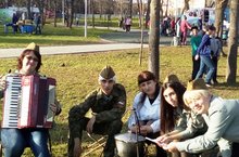 Сегодня в парке состоялся районный праздник, посвященный 73-ей годовщине Великой победы. На аллеях школы выставили свои "музеи в чемодане", был организован показательный смотр строевой подготовки среди отрядов "юноармейцев", а так же были организованы площадки - "привал Тёркина".