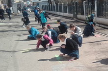 Сегодня во дворе школы дети рисовали на асфальте мелом на тему: "Весеннее настроение".С 1-4 классы разукрасили весь школьный двор, который стал по весеннему ярким и разноцветным.