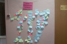 Сегодня в фойе школы появилась "стена комплиментов", дети клеили стикеры с комплиментами учителям и своим друзьям одноклассникам.