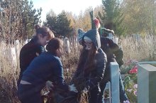 Сегодня ребята из 9 класса "А" поехали в очередной раз на кладбище "Сухая река", чтобы убраться на аллее ветеранов, к сожалению есть заброшенные могилы, и на них никто не убирается, ребята решили помочь в этом благородном деле.